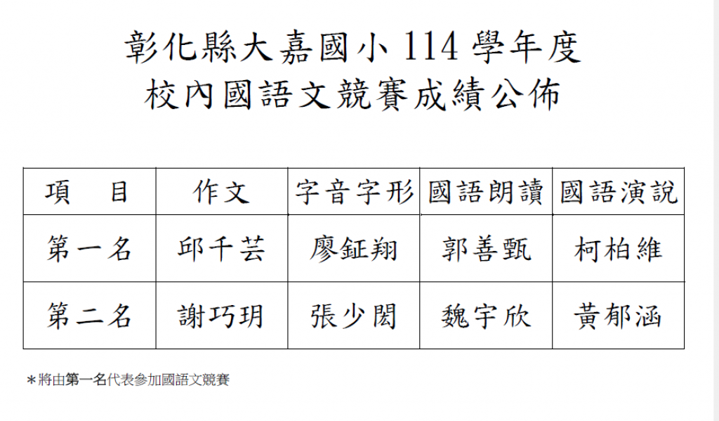 114學年度第一學期校內國語文競賽成績公布,恭喜獲獎同學!